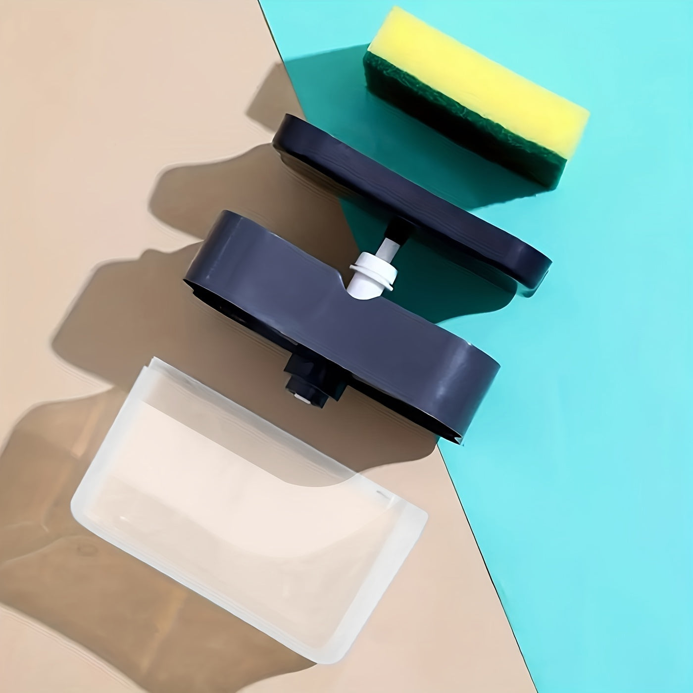 Keep your kitchen sink organized with this modern 2-in-1 dish soap dispenser. Features a built-in sponge holder to keep your sink area tidy and efficient.