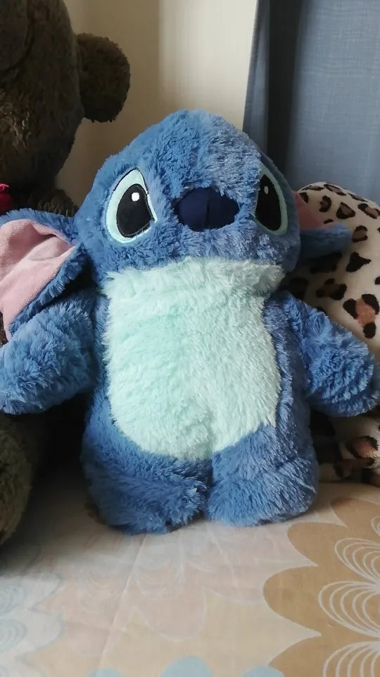 This adorable Stitch plush toy doubles as a comfort pillow with a removable hot water bag. Perfect for cuddling, warmth, and relaxation during cold days. A wonderful gift for kids and Stitch fans.